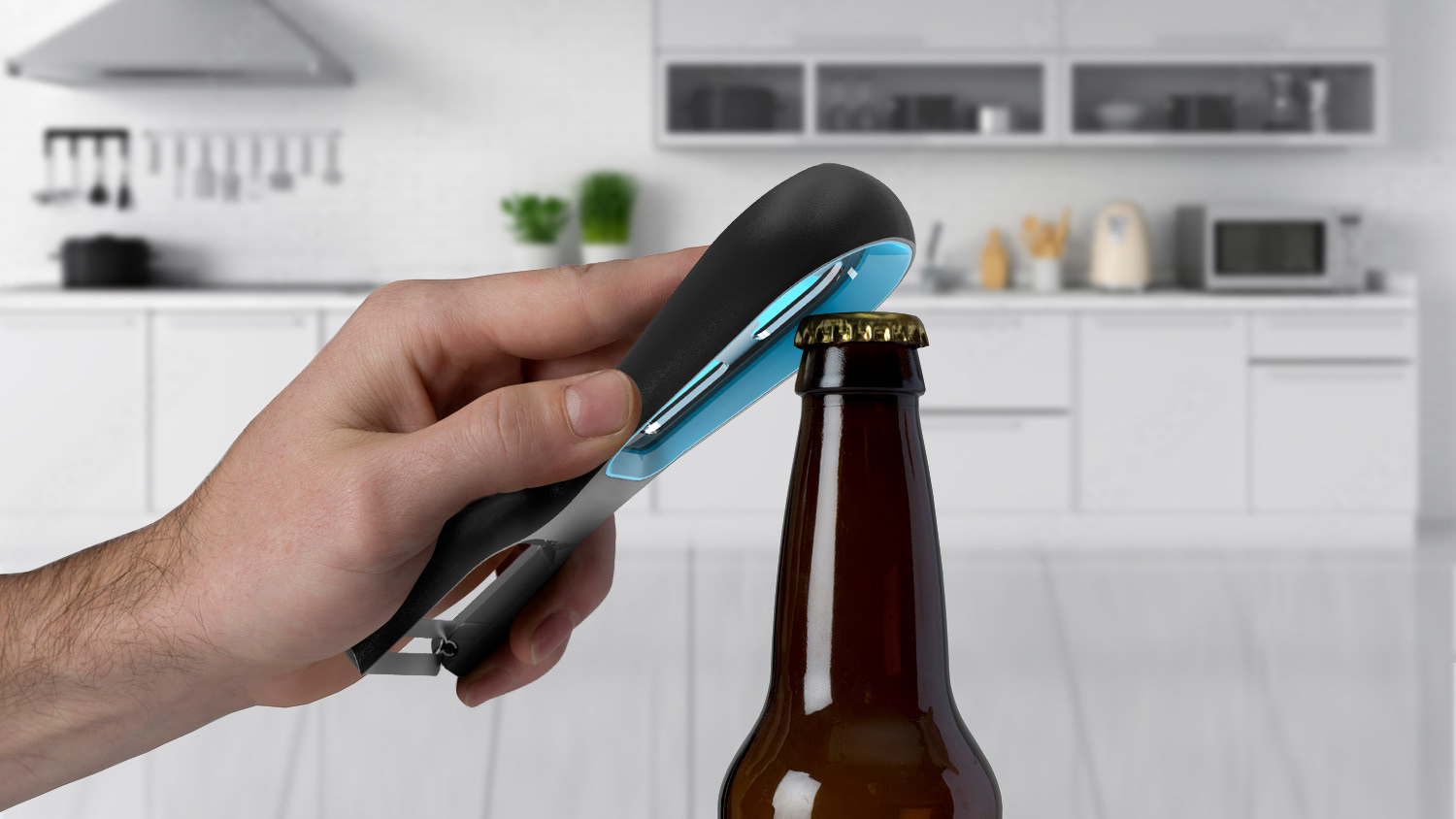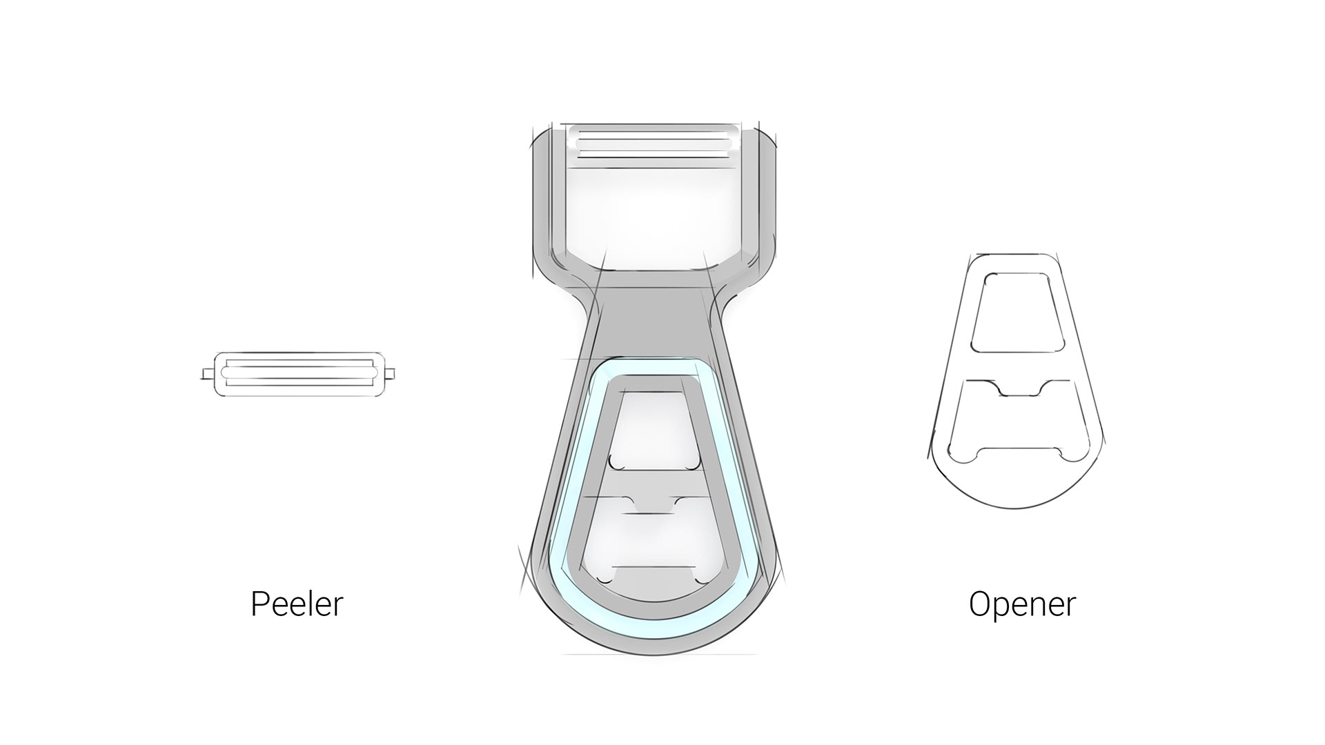 OPEELO is a multifunctional kitchen appliance. It can be used both as a vegetable peeler and a bottle opener. It aims to combine the two must-have kitchen tools, especially for small kitchens.